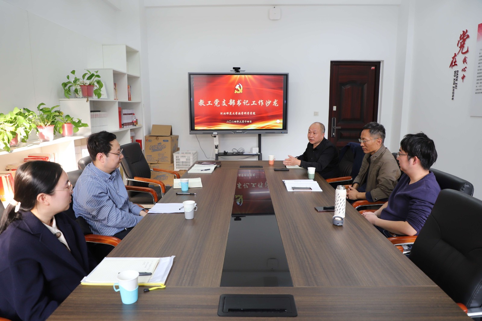 3月14日下午,数学科学学院在郝国辉教师党支部书记“双带头人”工作室举办教工党支部书记工作沙龙,学院党委书记乔维新、各教工党支部书记参加了本次活动,沙龙由教工第三党支部书记郝国辉主持。