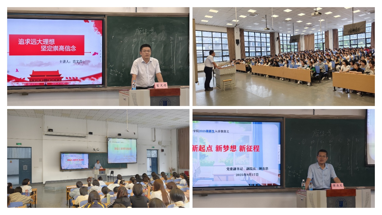 为帮助新生系好大学“第一粒扣子”,筑牢理想信念根基,引导同学们树立远大理想,科学规划大学生涯,9 月17日下午,数学科学学院在公教楼B110开展新生入学教育。学院党委书记苗文丹、党委副书记副院长顾连忠分别开展讲座,2025级全体学生及辅导员参加此次活动。